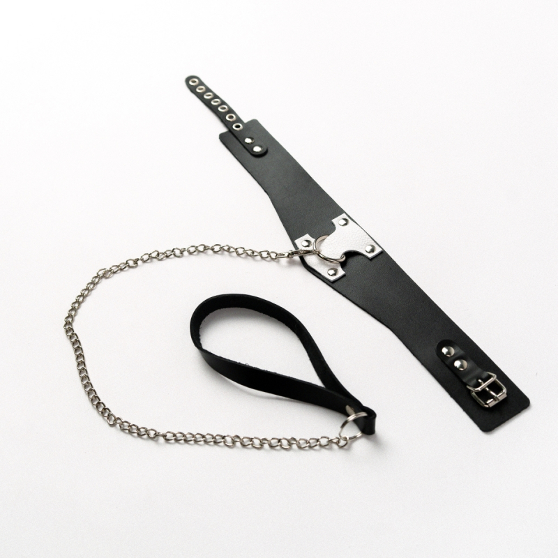 Стильный ошейник из коллекции "Crazy Handmade" с металлическим поводком - отличный БДСМ аксессуар для самой незабываемой сессии!