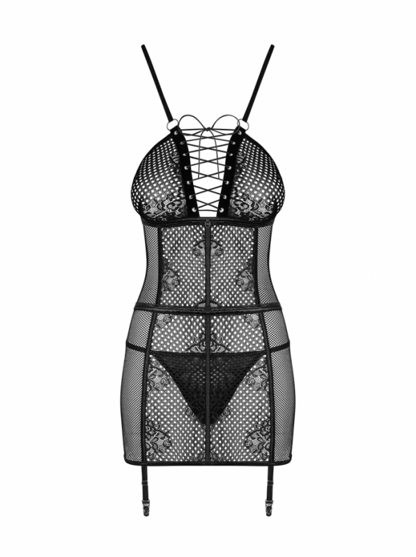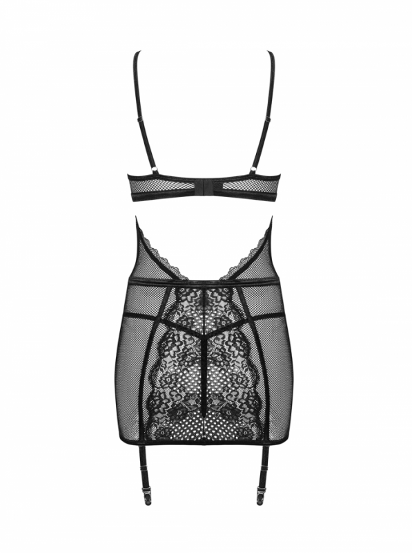 Пеньюар с пажами для чулок "Obsessive Basitta" черный, L/XL